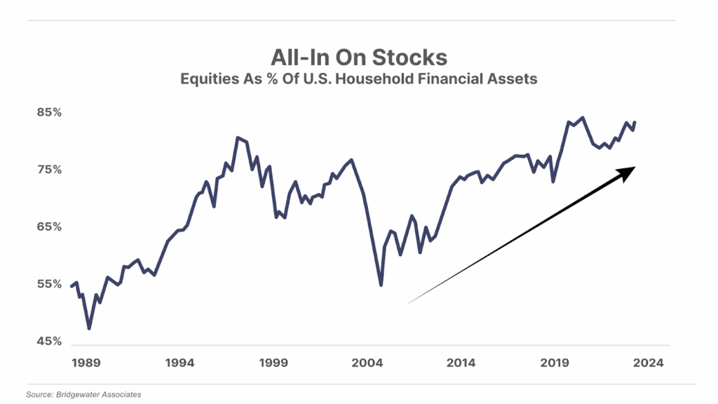 1. Americans’ financial futures have become tied to stocks. Following the financial crisis, U.S. households held around half of their financial assets in equities. Today, that amount has risen above 80% – higher than it was at the peak of the dot-com bubble – meaning the average American’s financial health has never been more dependent on the stock market.