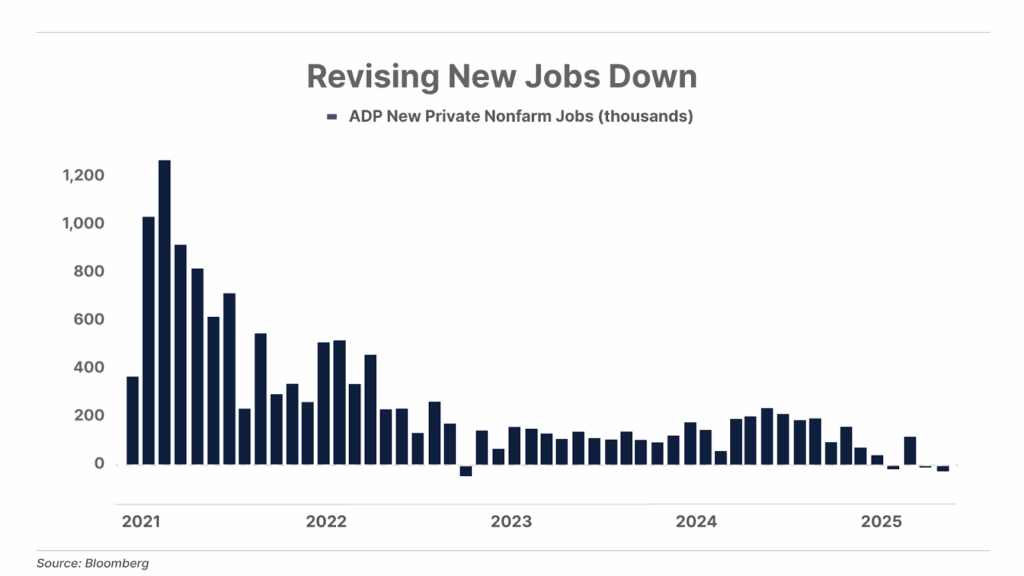 2. Private payrolls decline by the most in two and a half years. This morning, payroll-processing firm ADP reported private companies cut 32,000 jobs in September, the biggest monthly decline since March 2023. Wall Street economists had expected an increase of around 50,000 jobs. August’s payroll number was also revised lower to a loss of 3,000 versus an initial gain of 54,000. The Federal Reserve typically relies on the government’s official jobs report – scheduled to be released this Friday, October 3 – when making its monetary policy decisions. However, with the government currently shut down, the official report may be delayed… meaning this ADP report may take on more significance when the Fed meets again on October 29.