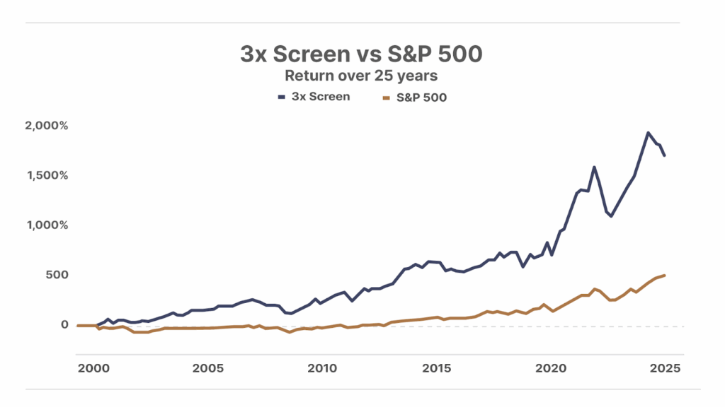 The 3x Screen was inspired by Porter himself, who challenged the Complete Investor analyst team to create a filtering tool to find companies with high capital efficiency, steady revenue growth, and that trade at reasonable valuations… and to backtest the results to ensure the screening criteria selected stocks that generated market-beating gains over time.